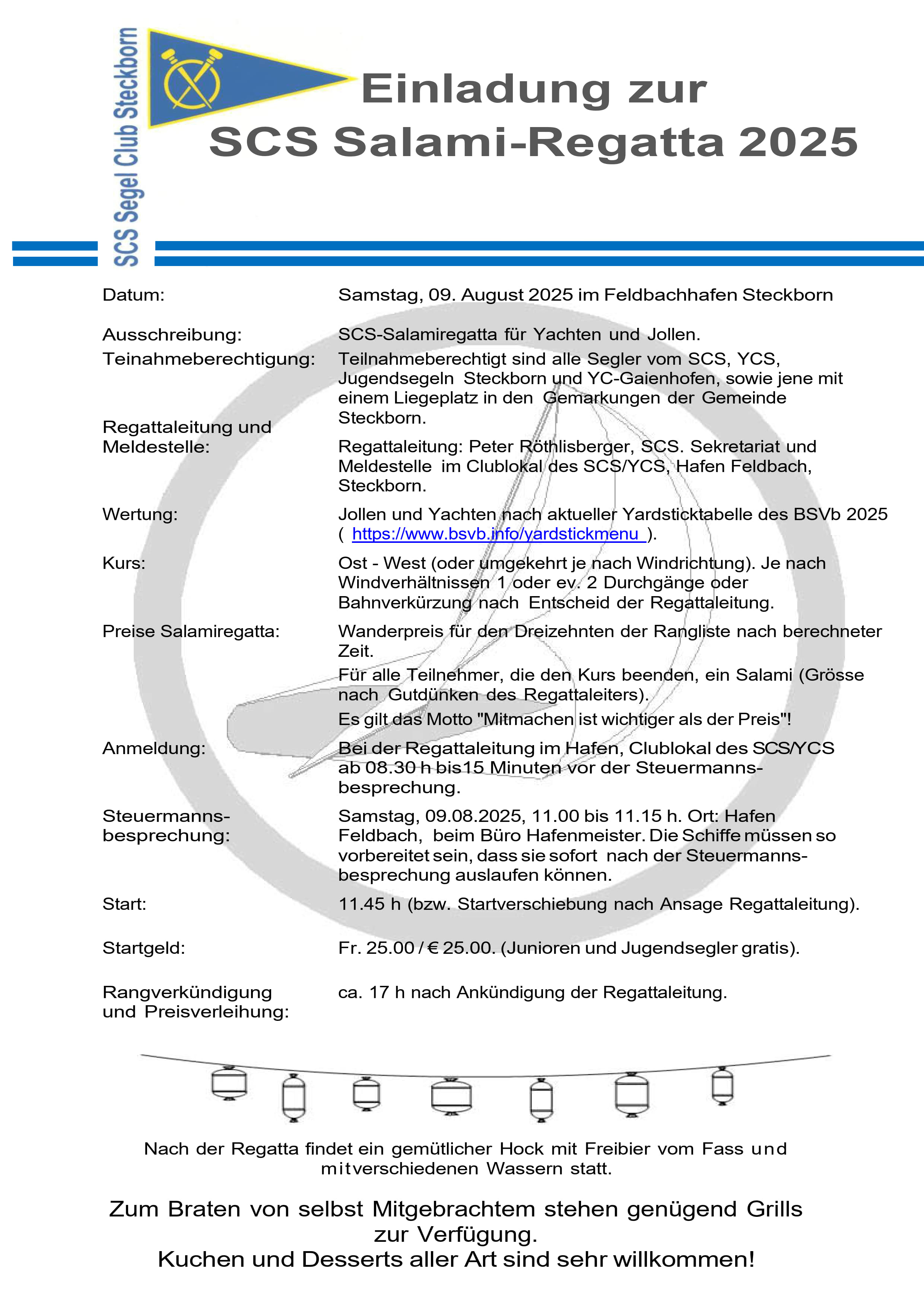 Freuen wir uns auf einen tollen Segelsommer! Ich wünsche Euch allen eine schöne und unfallfreie Segelsaison 2025 mit angenehmen Segelwinden und - ganz wichtig - stets eine Handbreit Wasser unter dem Kiel!